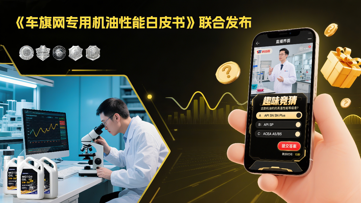 最终形成的《车旗网专用机油性能白皮书》将联合行业权威机构发布。线上网友可通过直播留言提问,工程师实时答疑,还有趣味竞猜、幸运抽奖让参与感拉满。