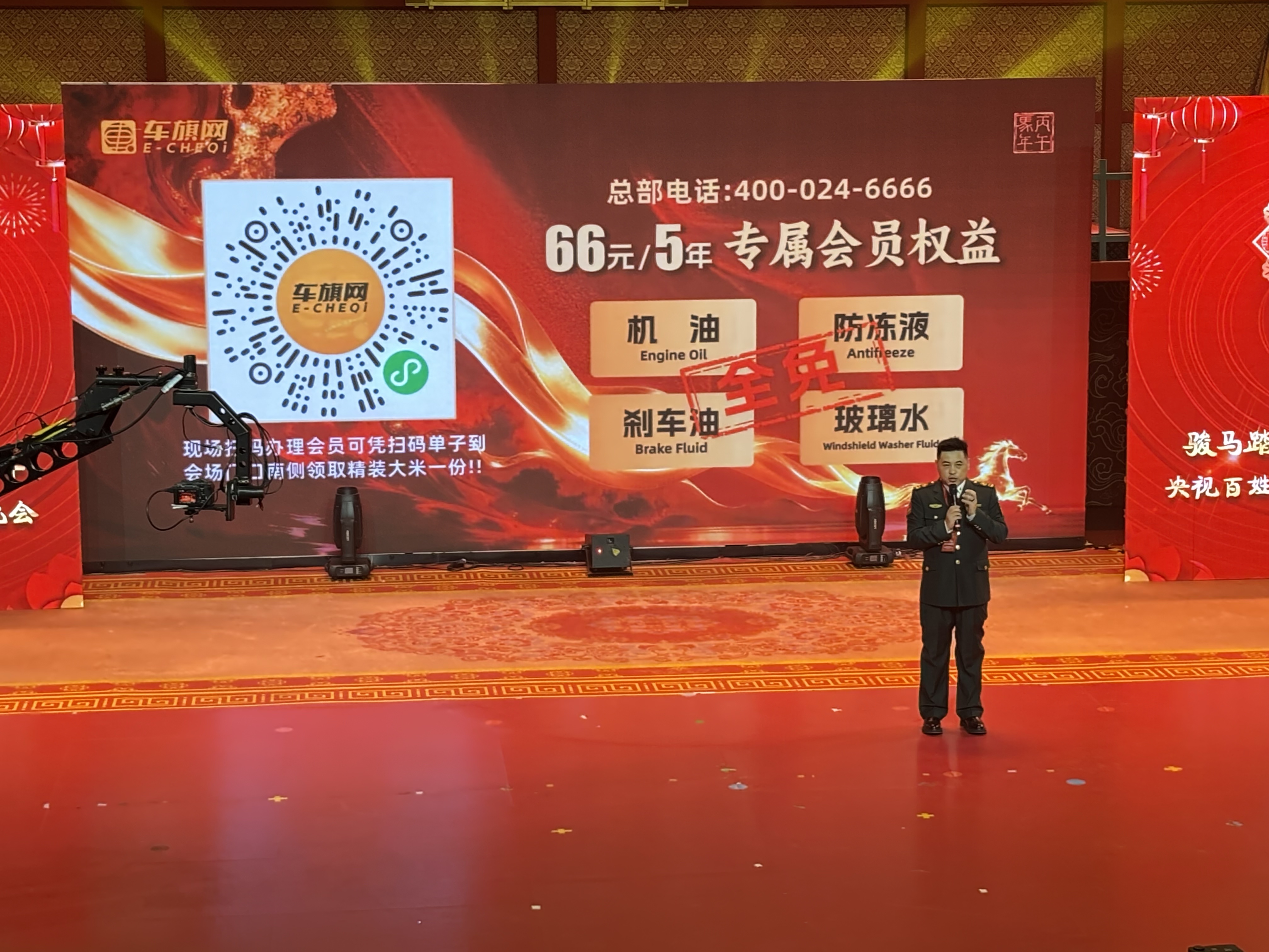 晚会录制间隙,车旗网负责人宫海先生受邀登台,以通俗易懂的语言详细解读了会员权益核心亮点。据介绍,只需66元即可加入车旗网会员,畅享长达5年的专属服务:涵盖全合成机油、玻璃水、防冻液、刹车油等基础养护用品免费使用,全车安全检测不限次数随时畅享,全国连锁门店通用保障出行便捷,叠加工时费补贴后,单次养车成本较市场均价节省300-800元,真正实现“小投入、大保障”的养车新模式。宫总在分享中强调:“车旗网始终坚守‘让养车更省钱、更省心’的初心,这次借助百姓春晚的平台,就是要把实实在在的福利送到老百姓身边,让每一位车主都能享受到优质普惠的汽车服务。”